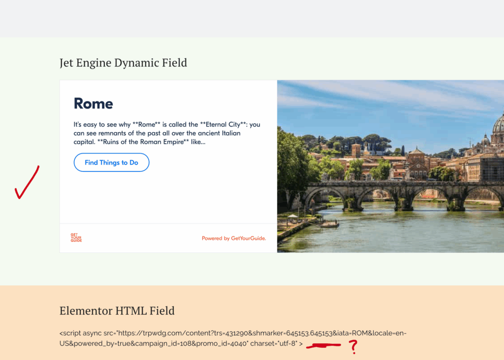 What We’re Solving You’ve got dynamic data in JetEngine—like an affiliate widget or a booking script—that changes per post (Rome, Paris, London). But every time you paste the full <script>…</script> code into a custom field, WordPress strips it out. Here’s how to make it work — safely, dynamically, and without hacks. The Working Solution (Straight […]
